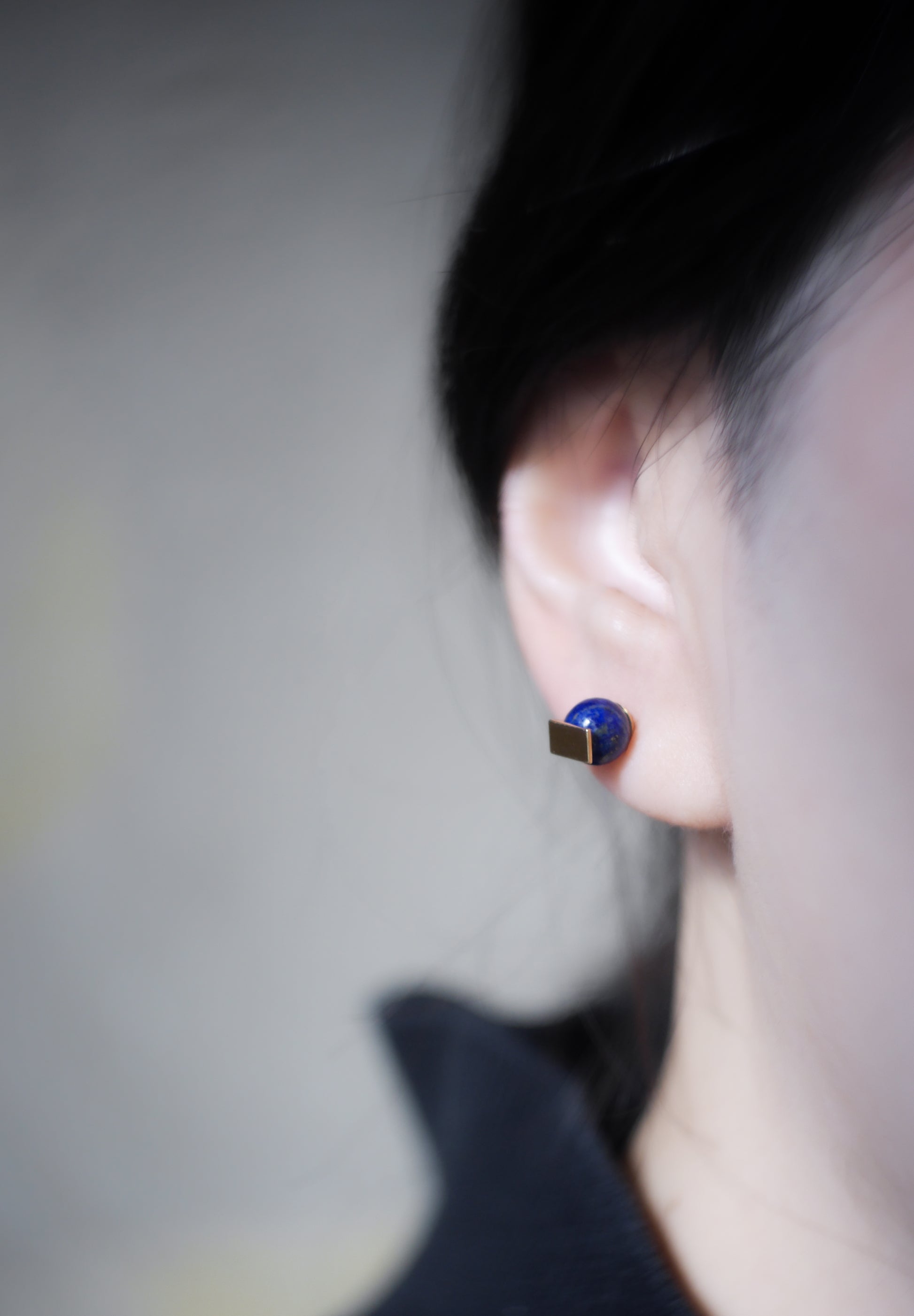 마스크 뒤에 | 피어싱 귀걸이 | 18캐럿 옐로우 골드, 청금석 | 청금석: 직경 6.0mm