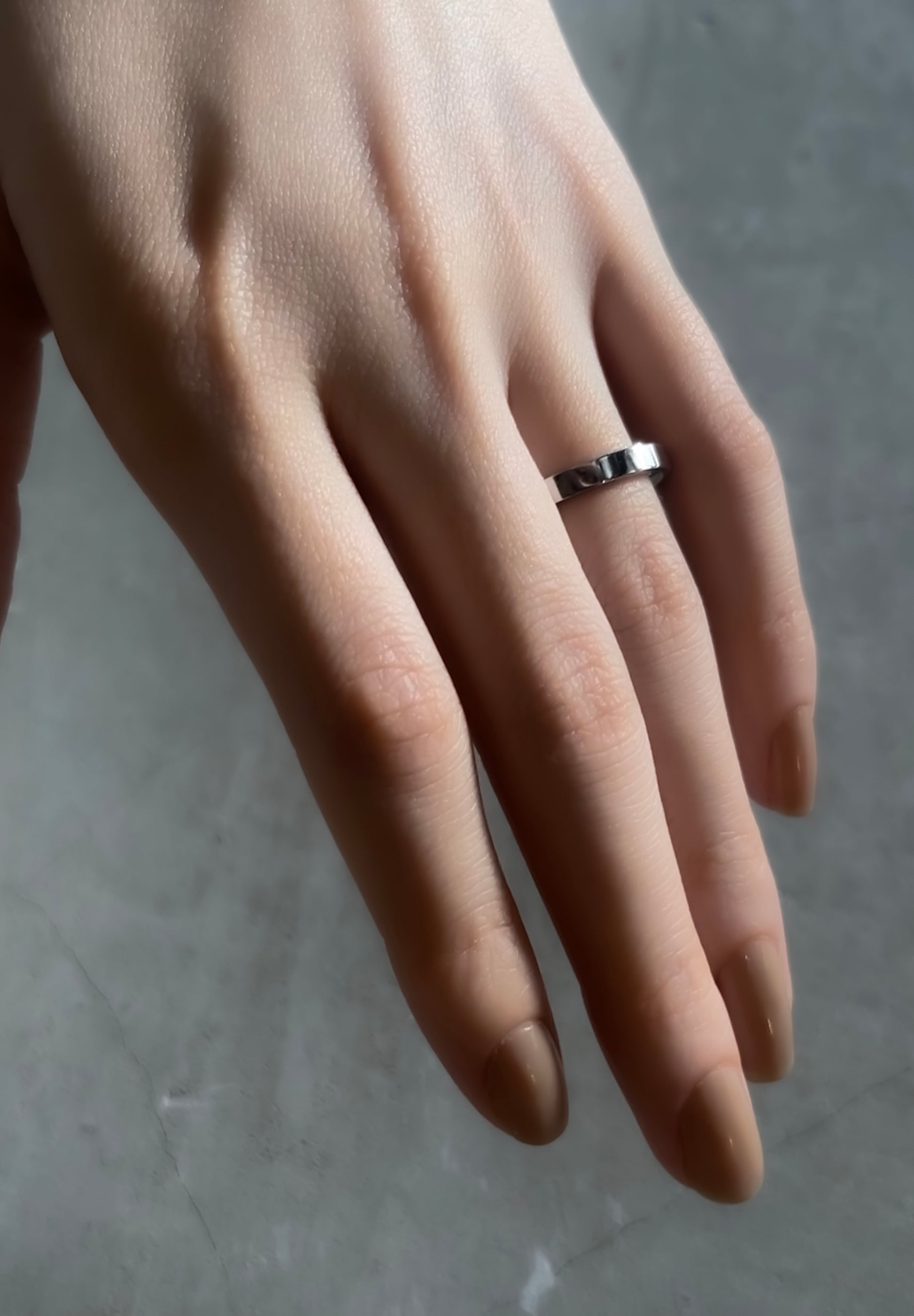 HIDDEN PLACE는 결혼반지와 호환되는 아이템입니다. 겉면은 구름 한 점 없이 아름답고 평평한 표면이고, 안쪽은 완만하게 둥글게 처리되어 있어 착용하기 매우 편안한 반지입니다. 외부와 내부의 대비가 아름다운 디자인으로 차분한 분위기를 연출합니다.