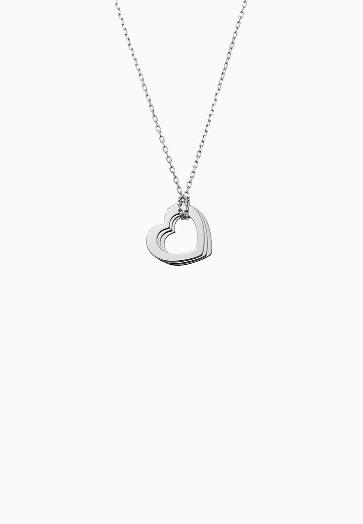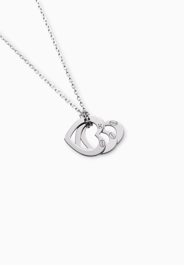 세 개의 하트 플레이트를 체인으로 묶어 목걸이를 만듭니다. 하트를 겹쳐 만든 형태는 흔들리며 아름다운 움직임을 가지고 있습니다.