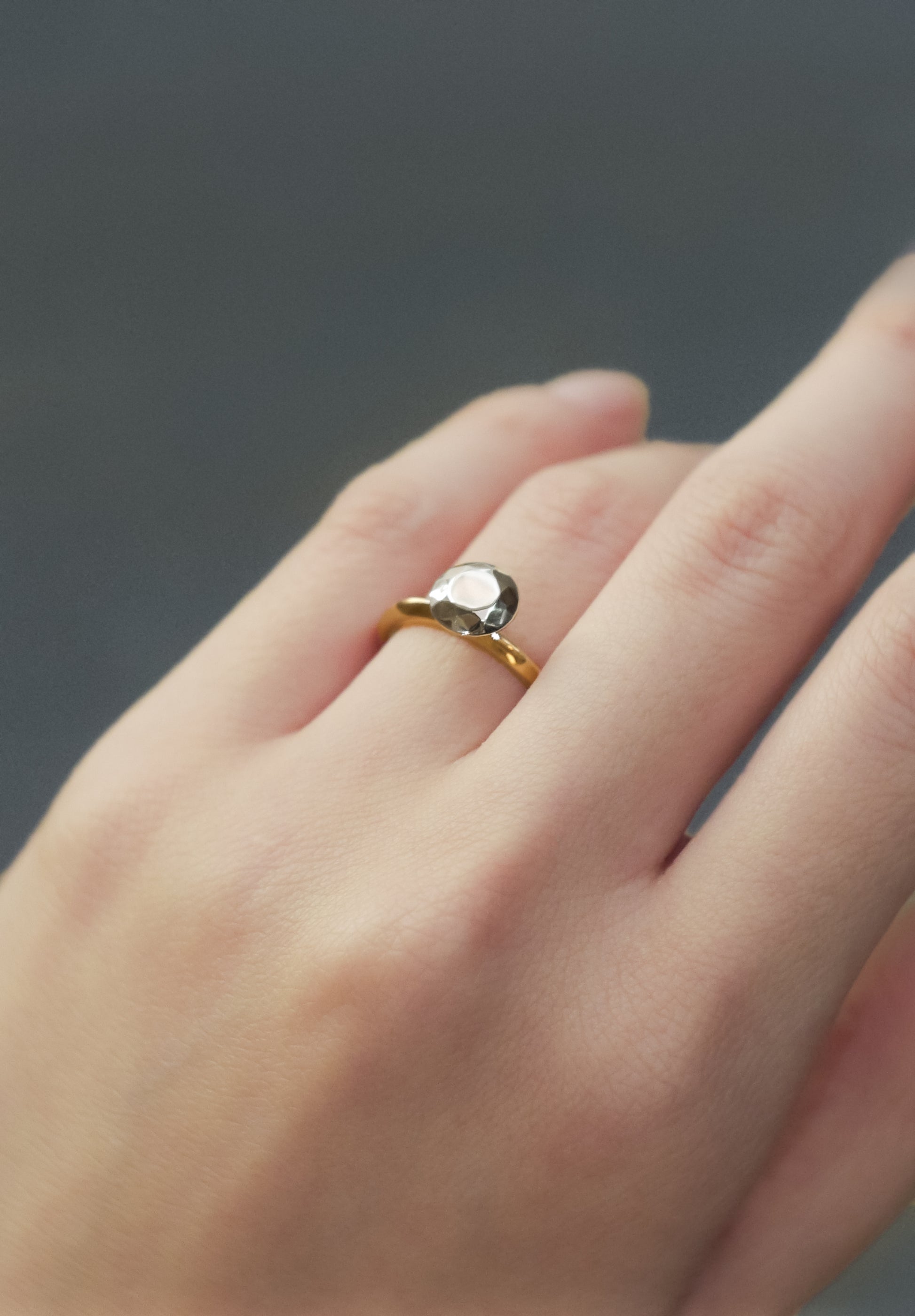 Platinum900 패싯 링. 모더니스트 건축가 루이스 칸(Louis Kahn)의 “모든 물질은 빛이 다 타버린 뒤에 남는 것”이라는 말을 바탕으로 디자인되었습니다. 다이아몬드 반지를 모방한 궁극적인 미니멀리스트 모던 접근 방식입니다. 약혼반지로도 딱 맞습니다. *다이아몬드 모양의 상단 직경은 약 6.9mm입니다. 약 1.2캐럿의 다이아몬드 크기에 해당합니다.