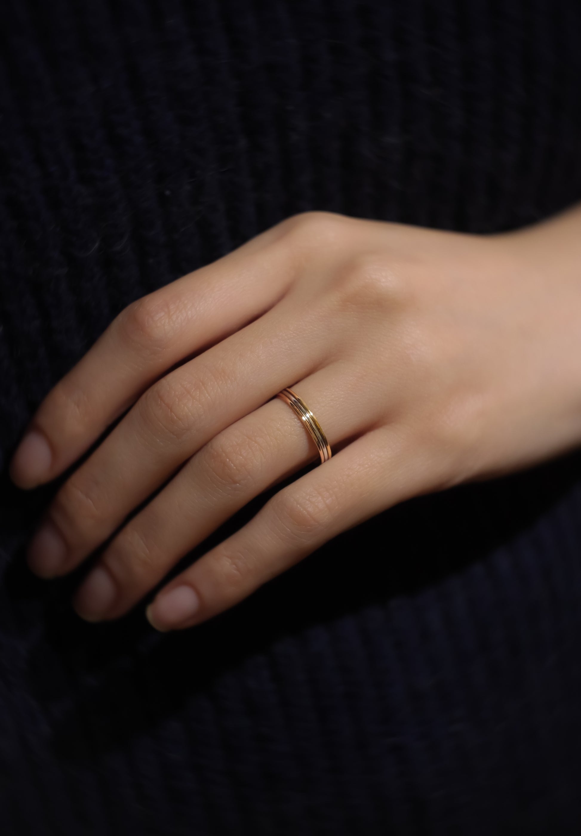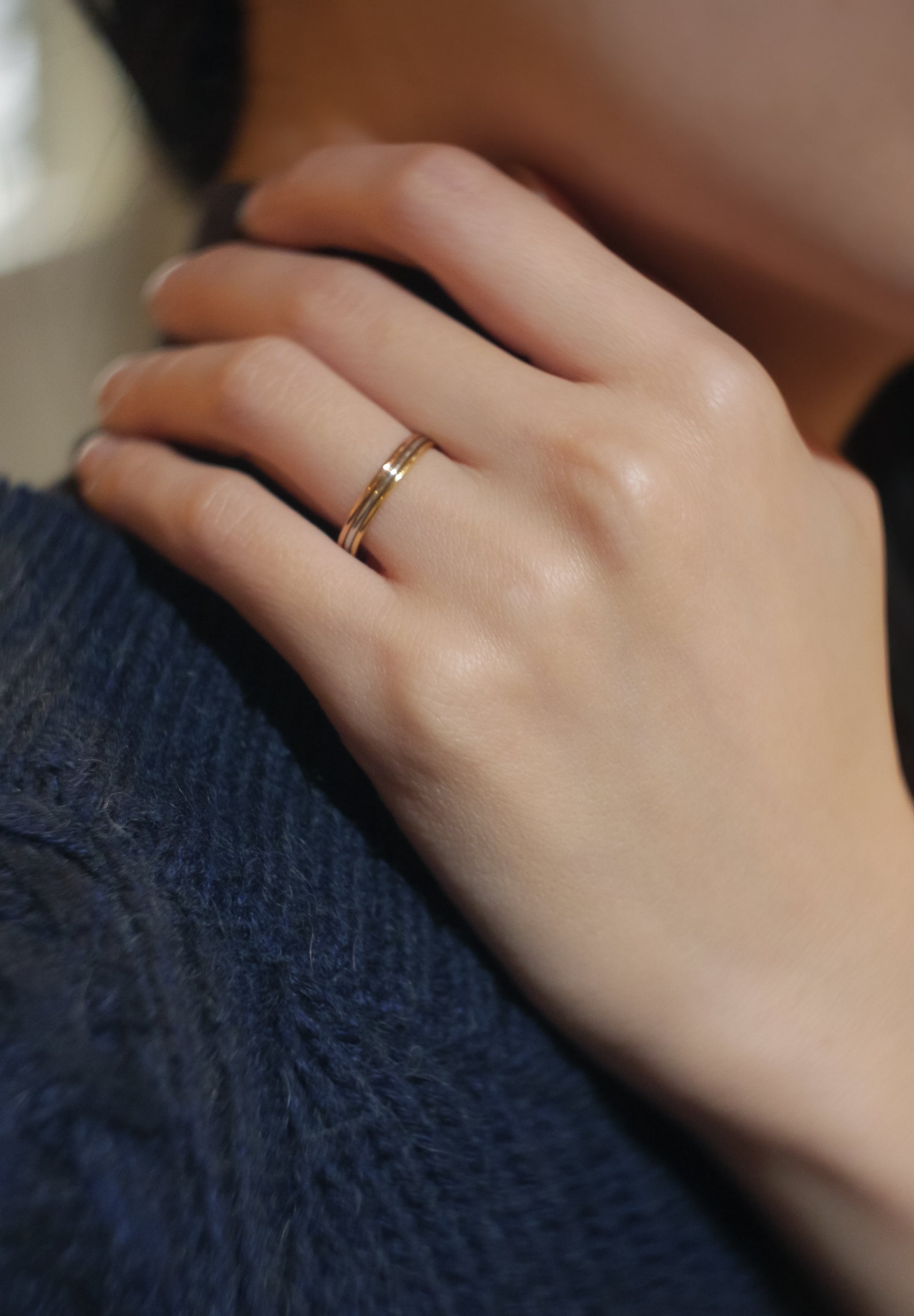 반지는 6개 부분으로 나누어져 있으며, 18K 옐로우 골드, 핑크 골드, 플래티넘이 고르게 분포되어 있습니다.SHUN OKUBO주얼리 장인의 높은 기술이 있었기에 가능한 아이템입니다. 세 가지 유형의 금속은 "조화"를 표현합니다.