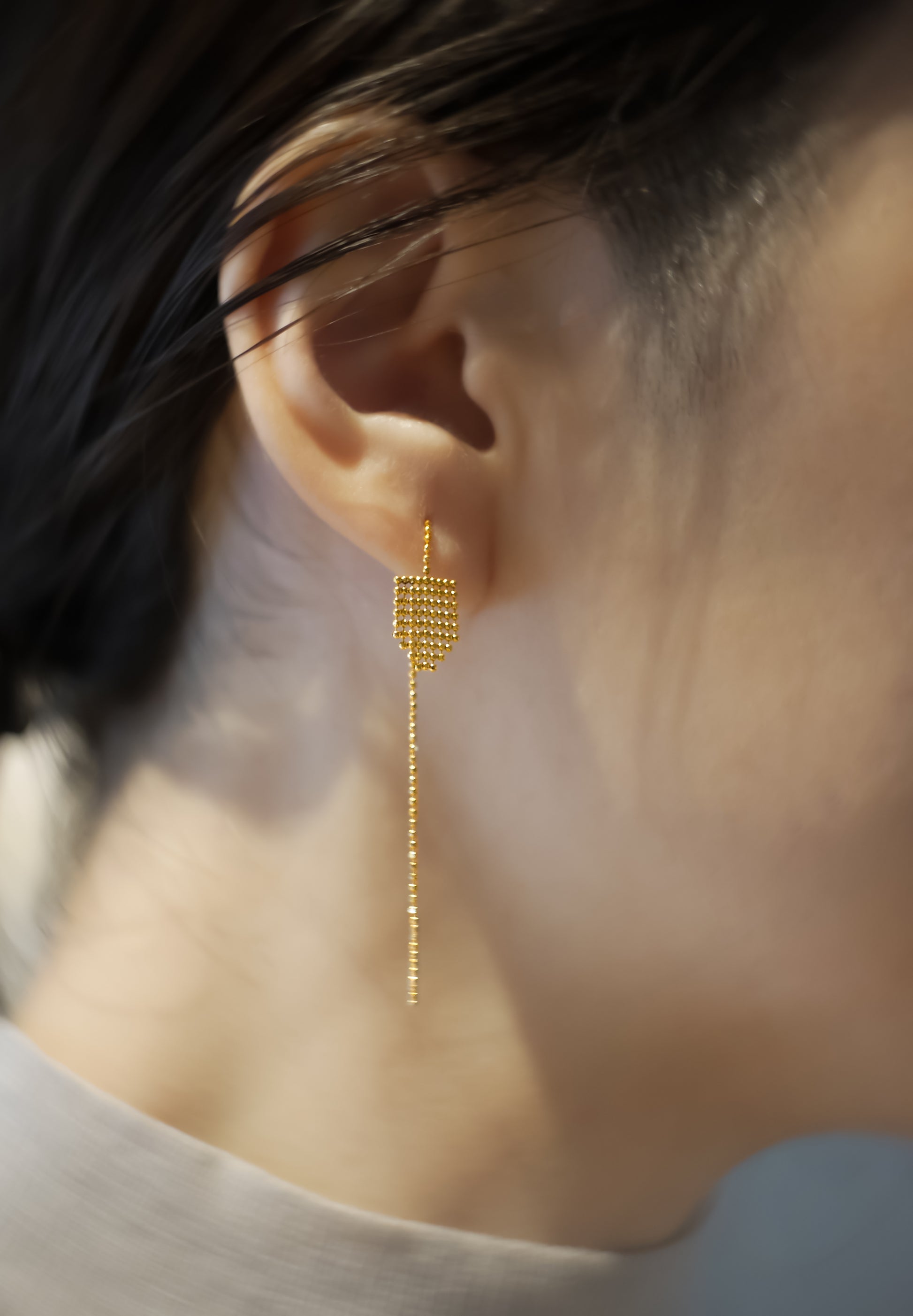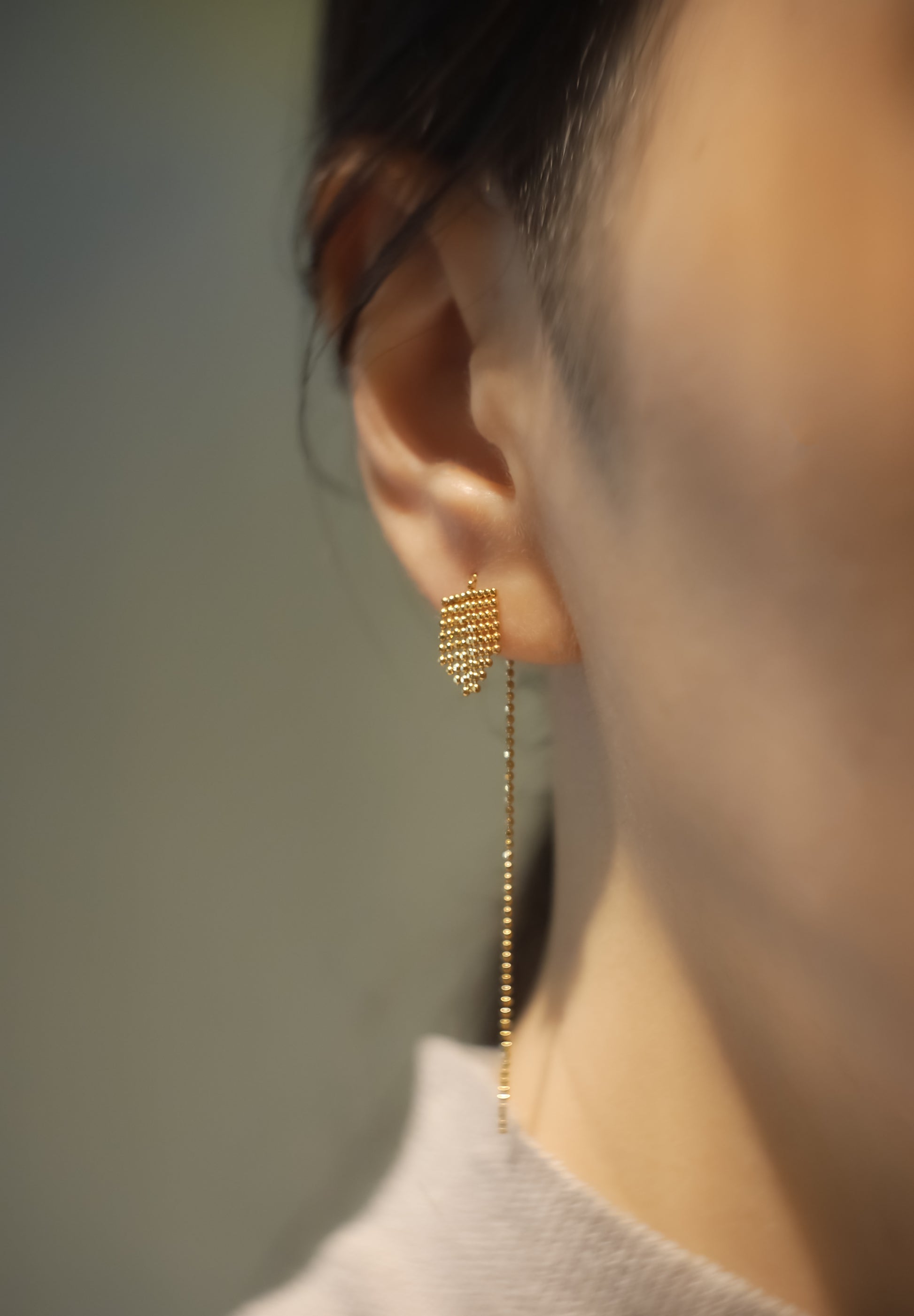 약 1.0mm 정도의 볼컷 체인이 술처럼 겹쳐져 이어져 아름다운 실루엣을 이룬다. 또한 볼 체인을 용접, 경화하는 기술을 사용하여 낭비를 배제한 완전 미니멀 스타일을 실현했습니다.