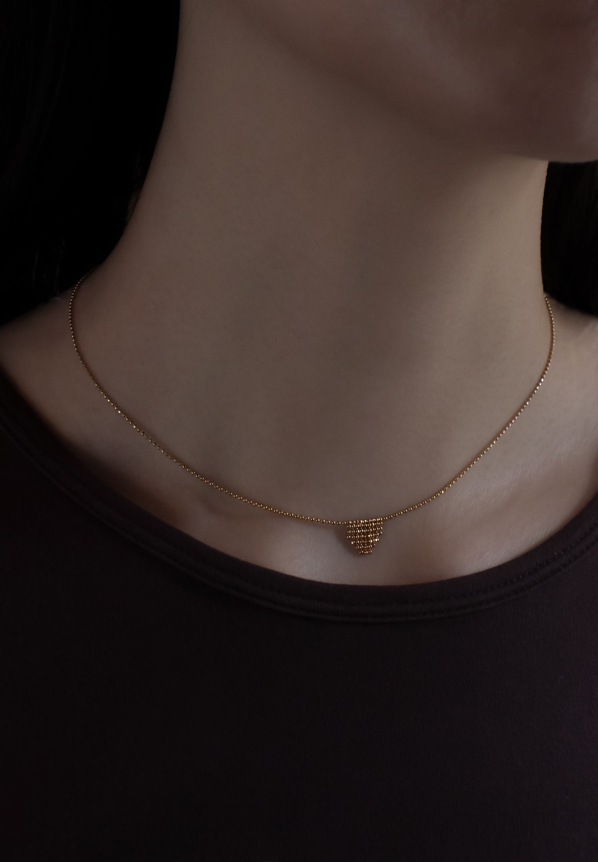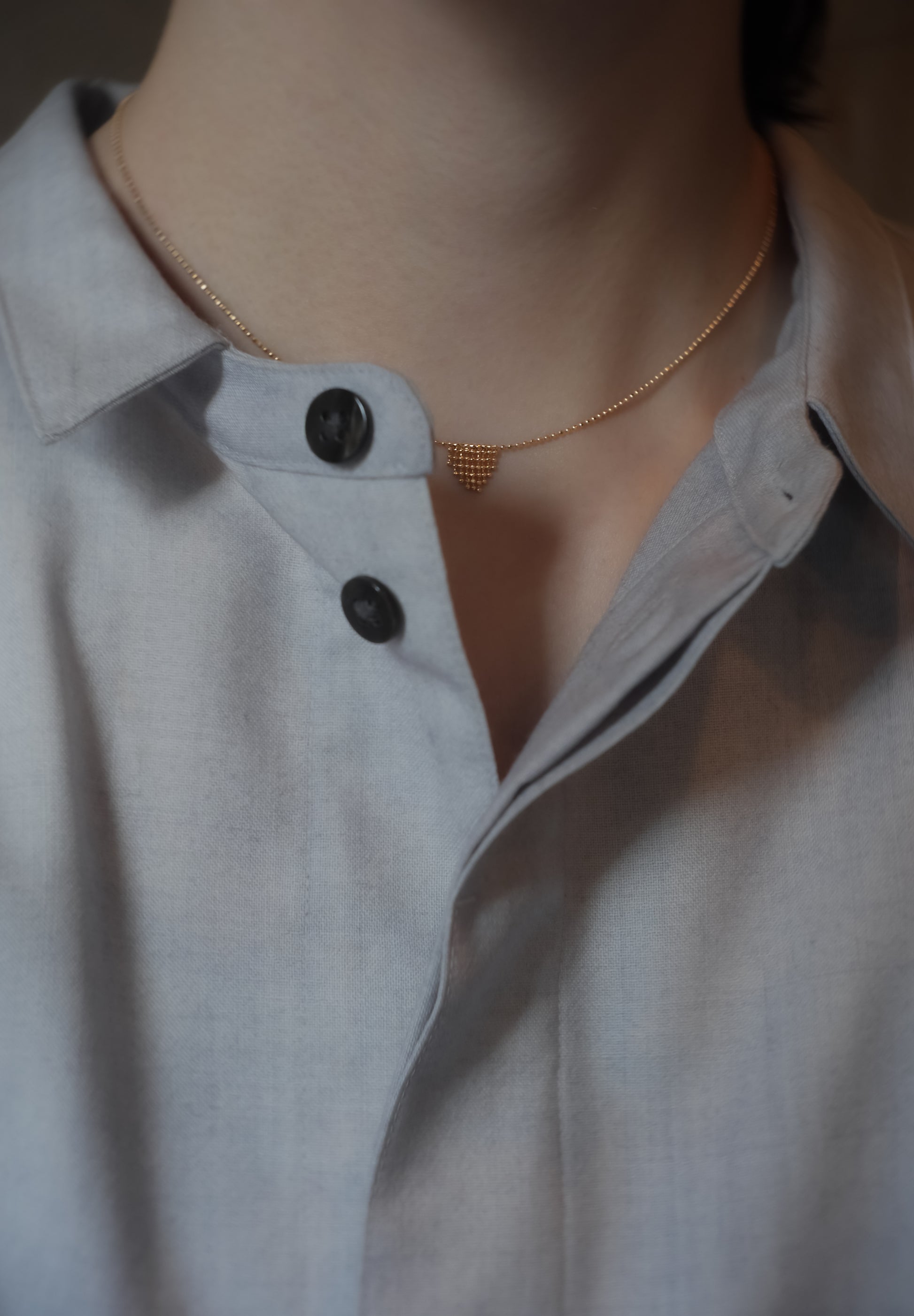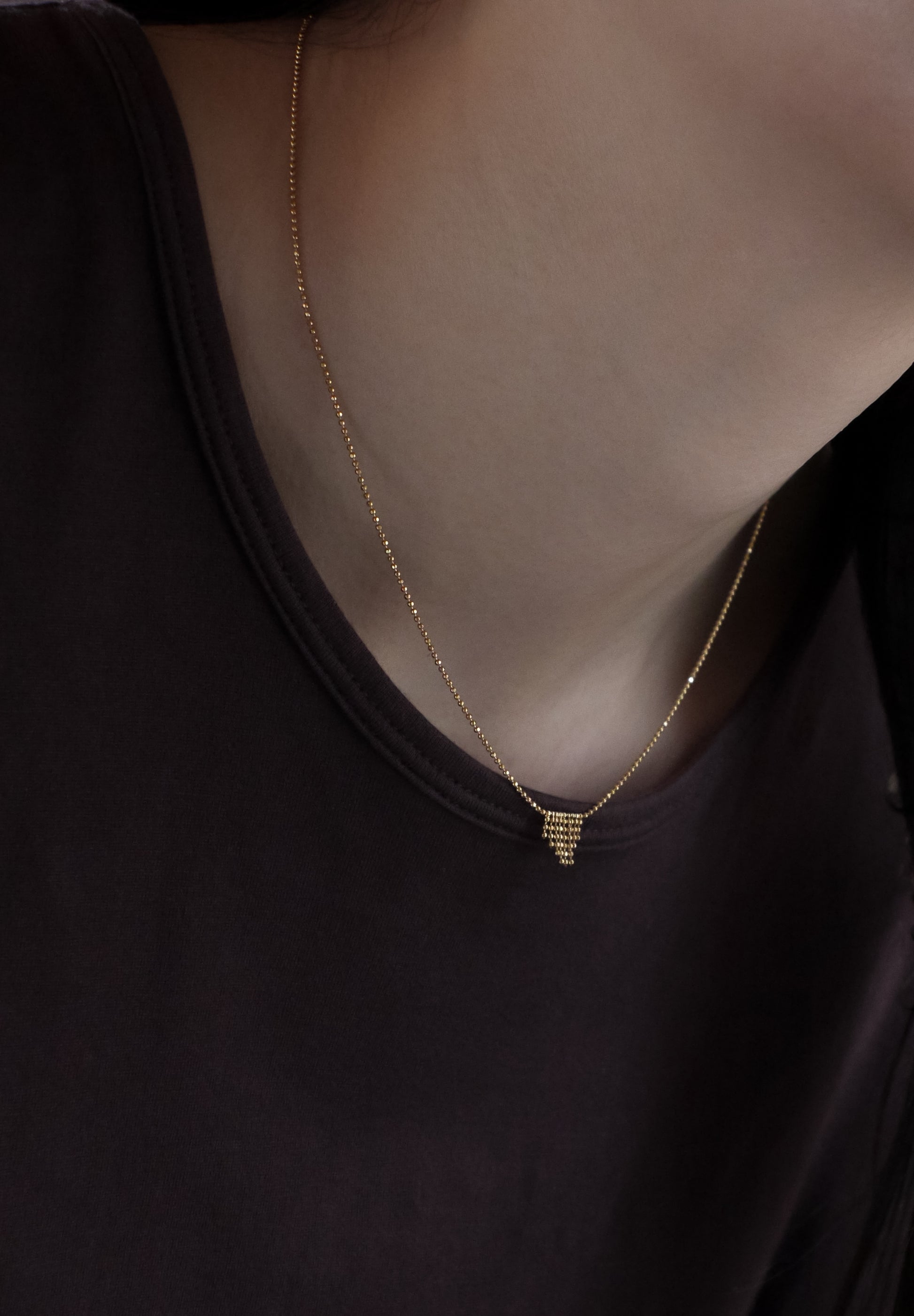 약 1.0mm 정도의 볼컷 체인이 술처럼 겹쳐져 이어져 아름다운 실루엣을 이룬다. 또한 볼 체인을 용접, 경화하는 기술을 사용하여 낭비를 배제한 완전 미니멀 스타일을 실현했습니다.