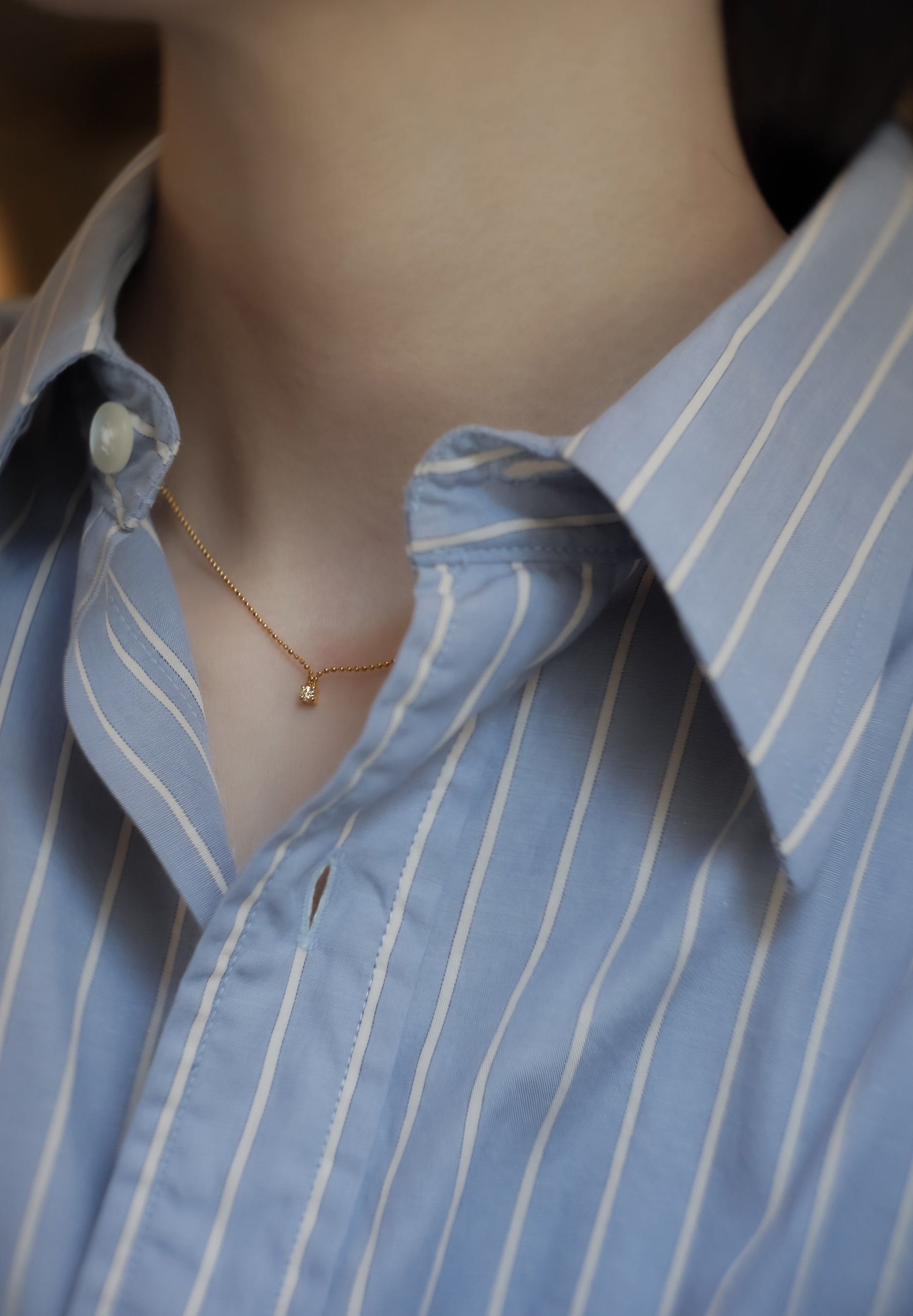 클러스터 시리즈의 다이아몬드 목걸이는 지극히 단순하지만 체인이 다이아몬드를 향해 가늘게 흘러가며 화려하면서도 섬세하고 온화한 느낌을 줍니다.