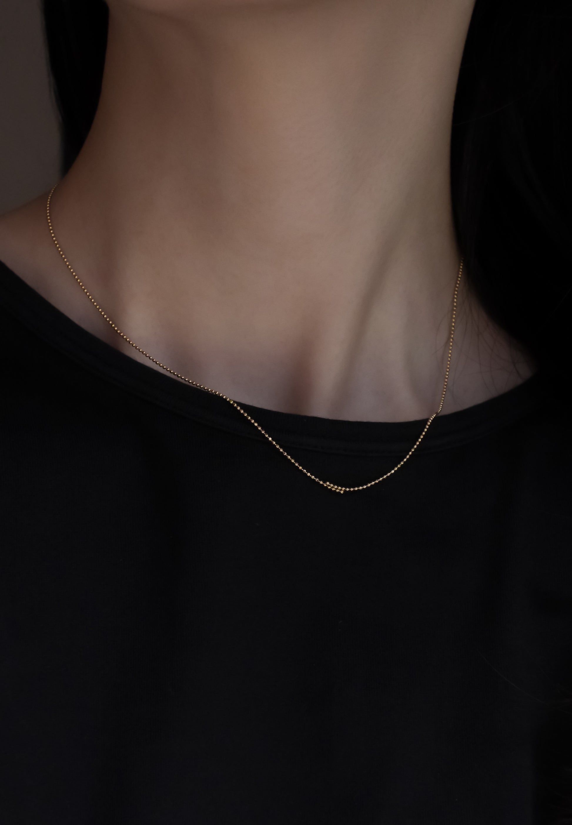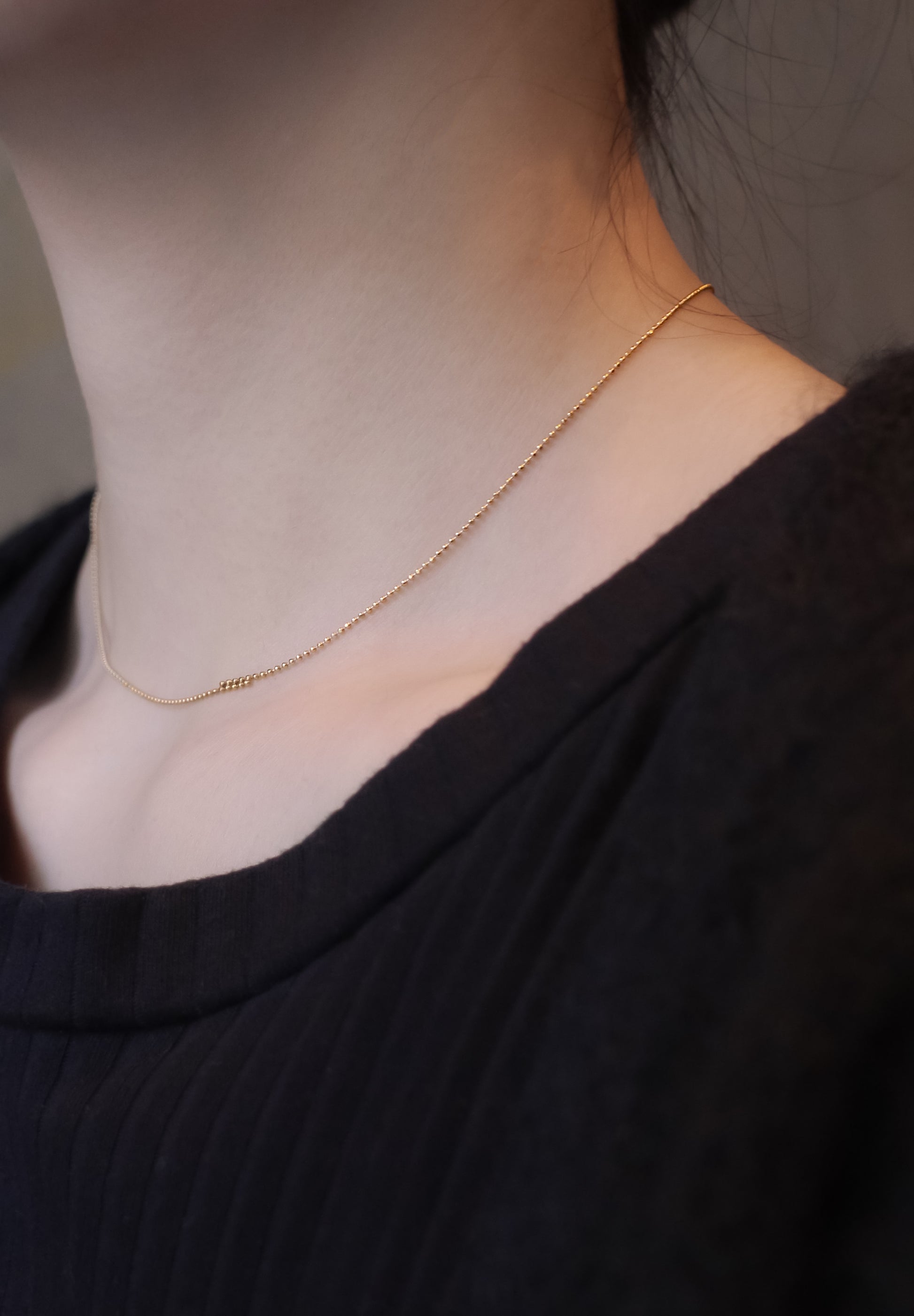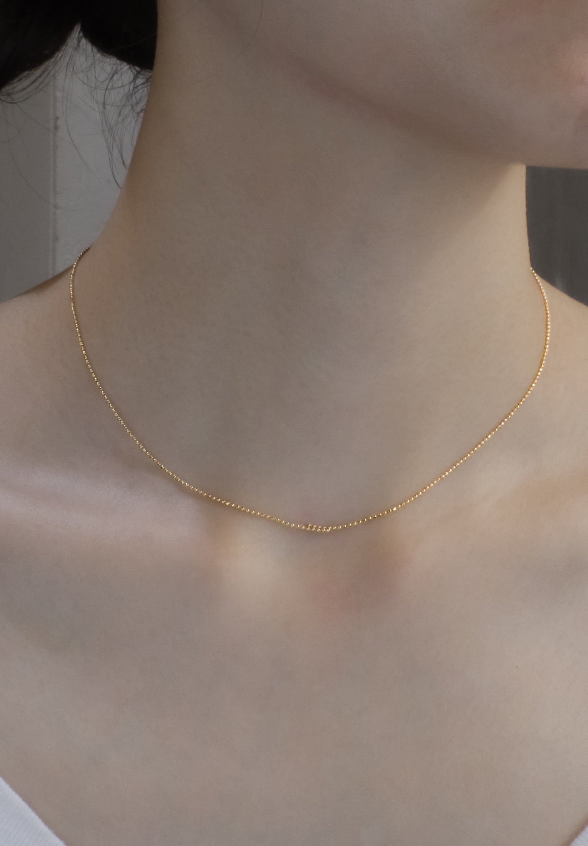 상단에 오버랩 목걸이두 개의 체인이 부분적으로 겹쳐져 있으며,극도로 미니멀하고 캐주얼하게 장식된 목걸이입니다. 10mm의 오버랩은 은은하면서도 권태로운 느낌을 줍니다.