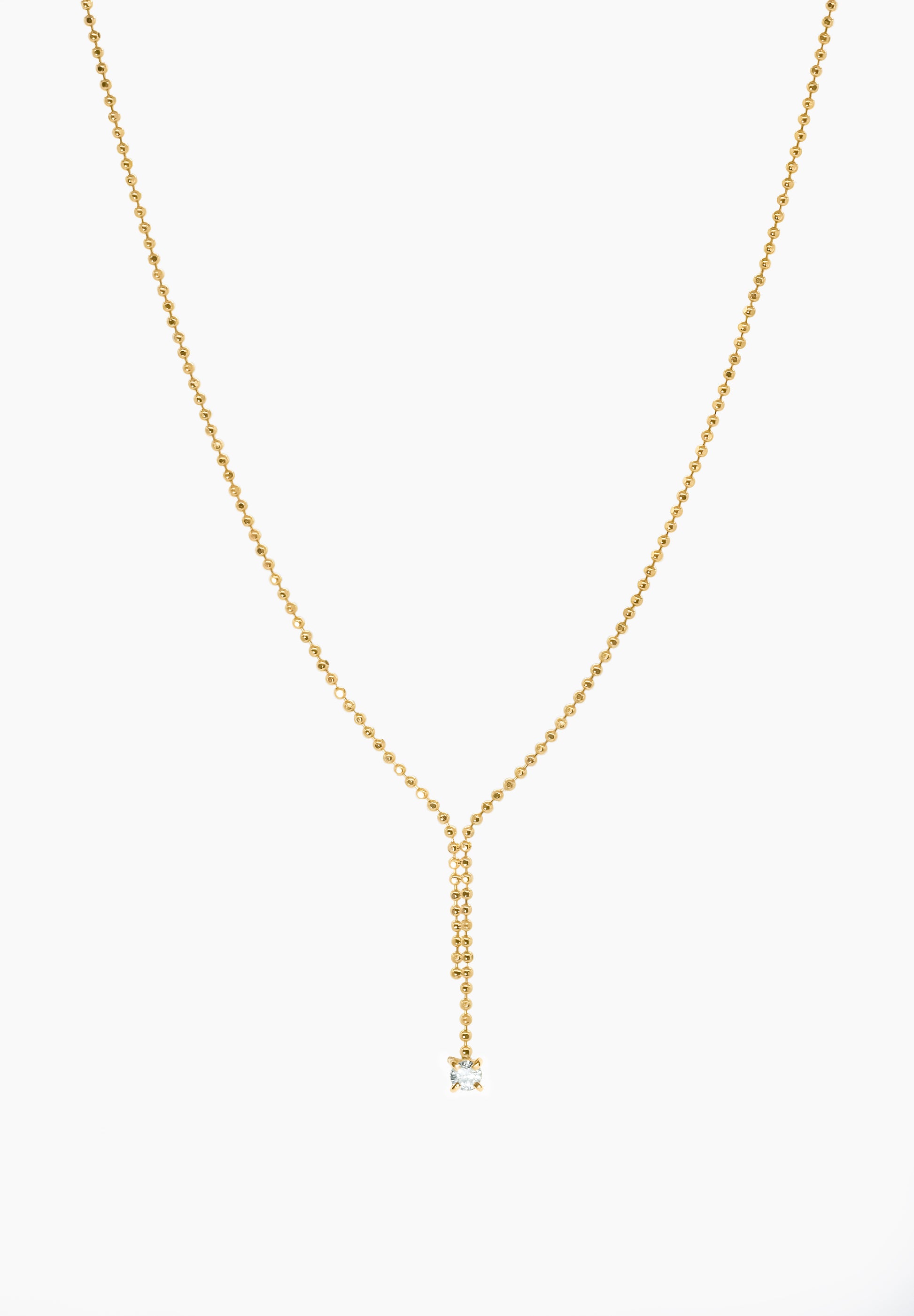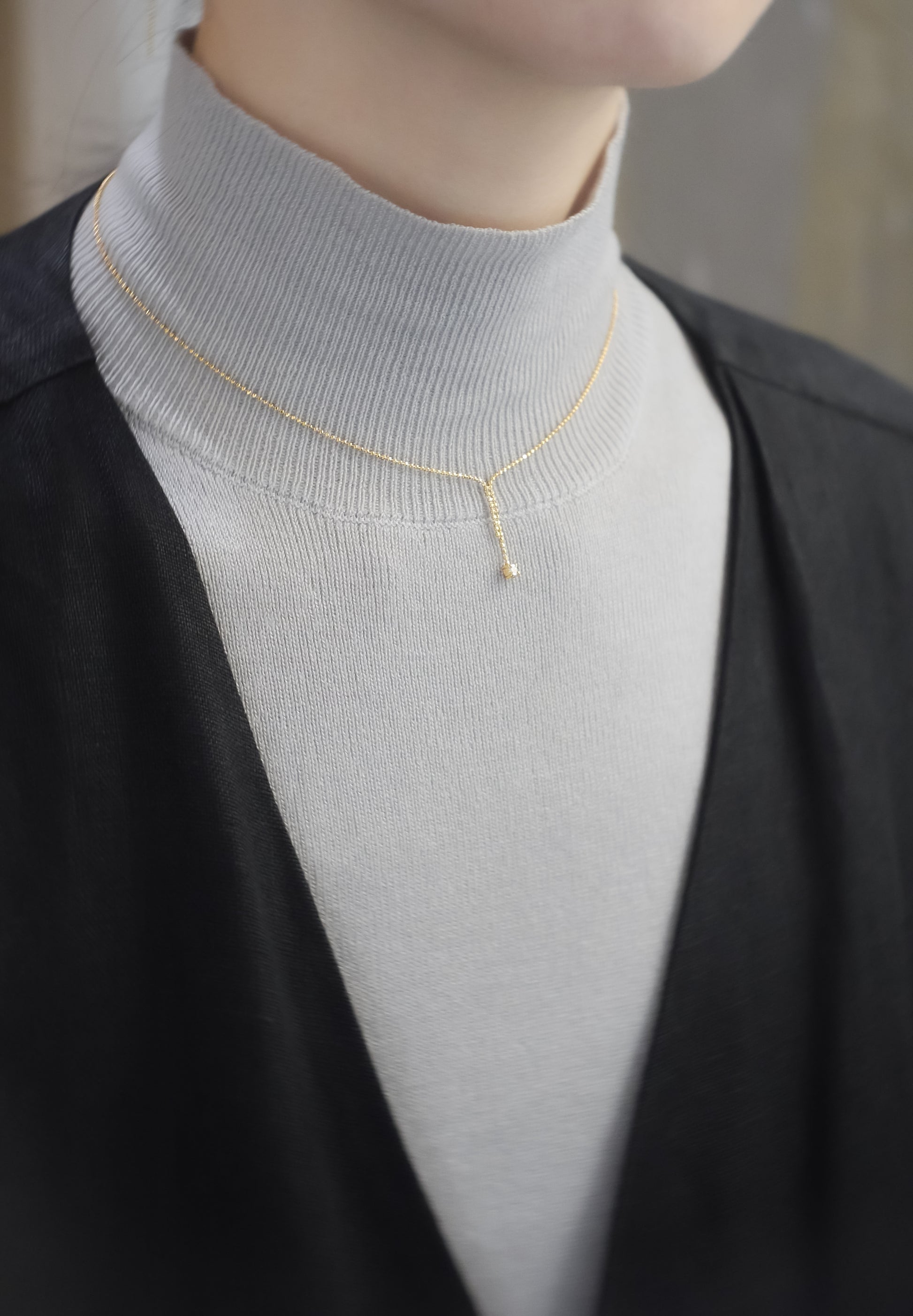 클러스터 시리즈의 타이 다이아몬드 목걸이는 수직으로 흐르는 체인 끝에서 하나의 다이아몬드가 떨어져 내려와 화려하면서도 클래식한 느낌을 줍니다.