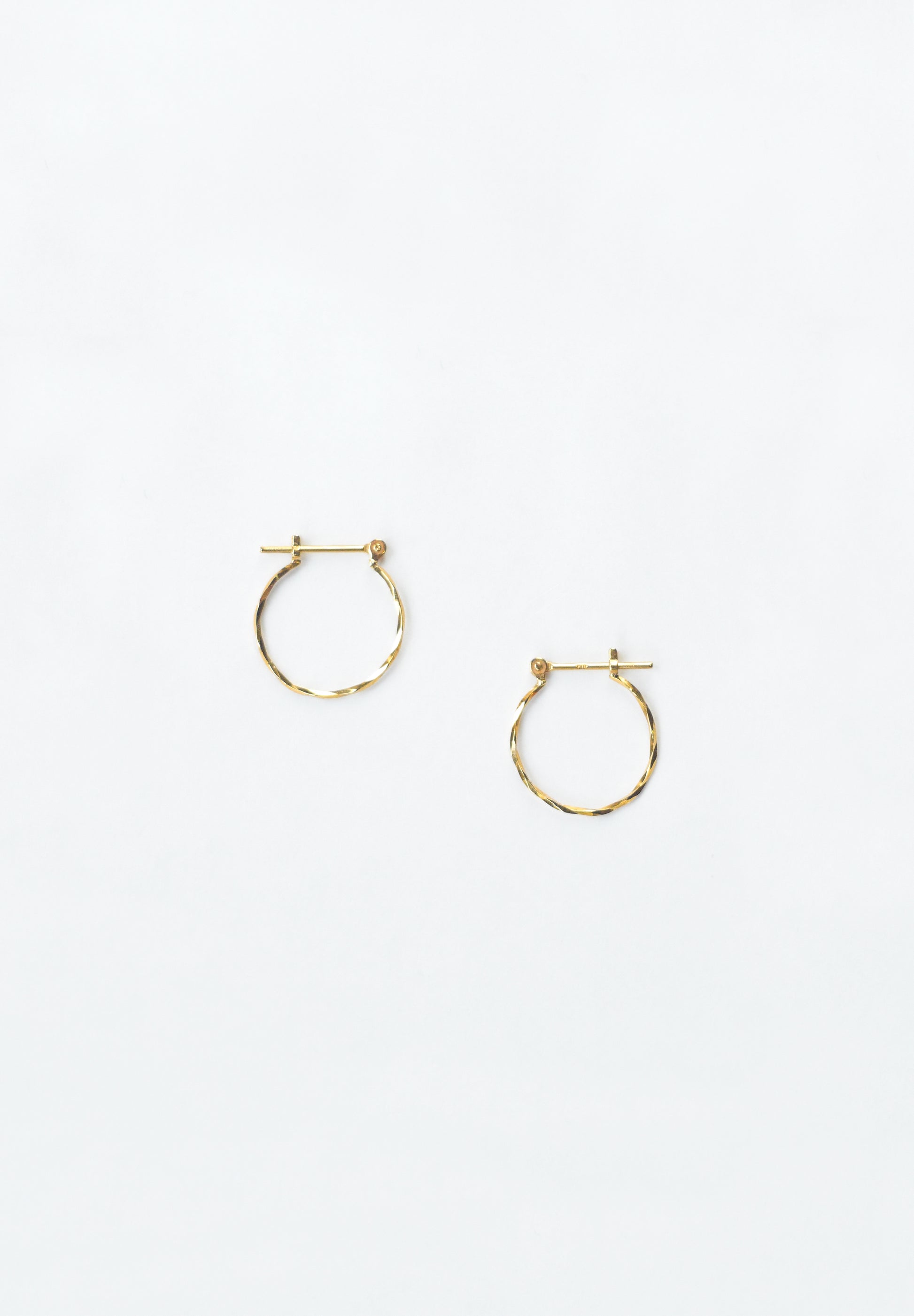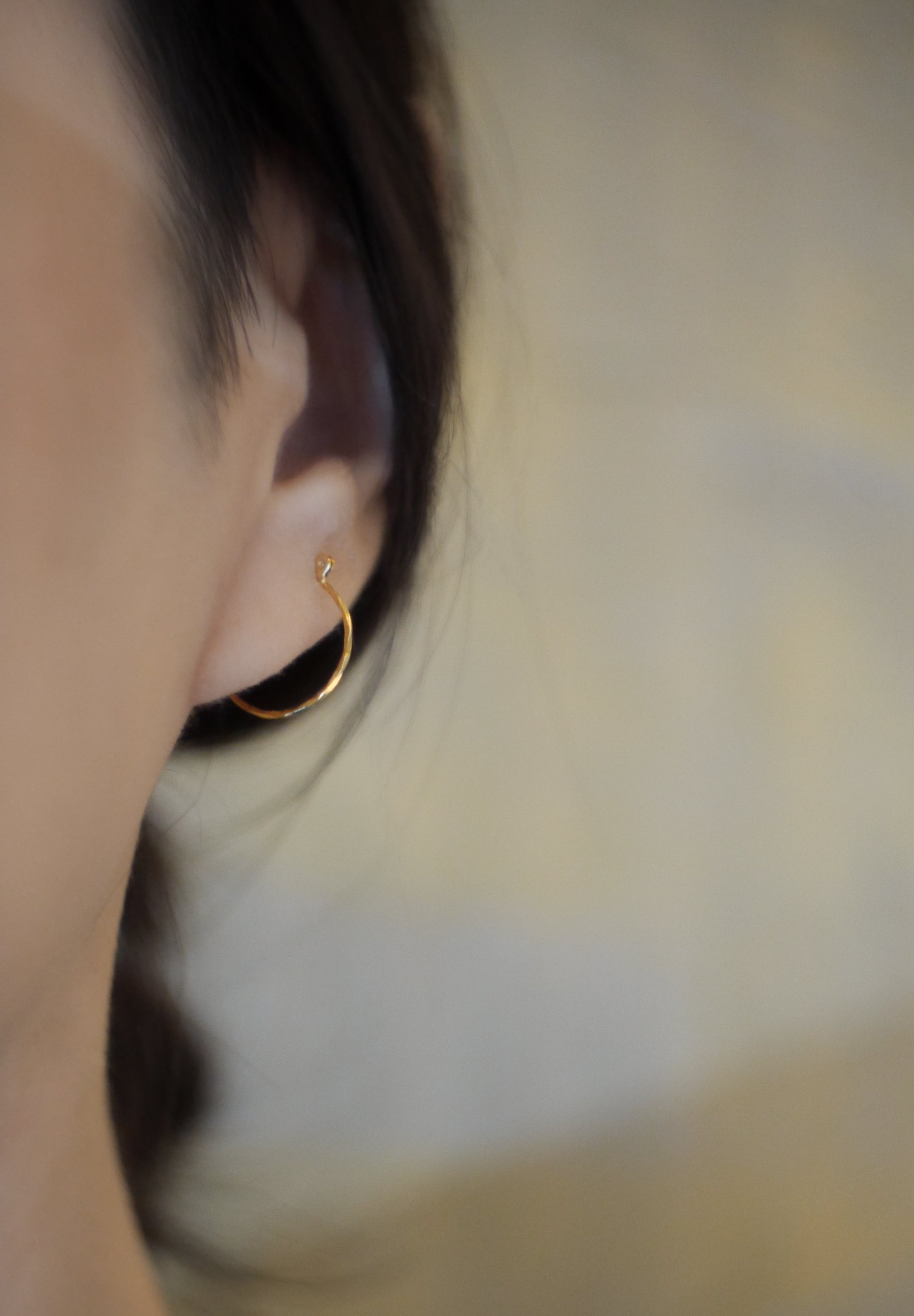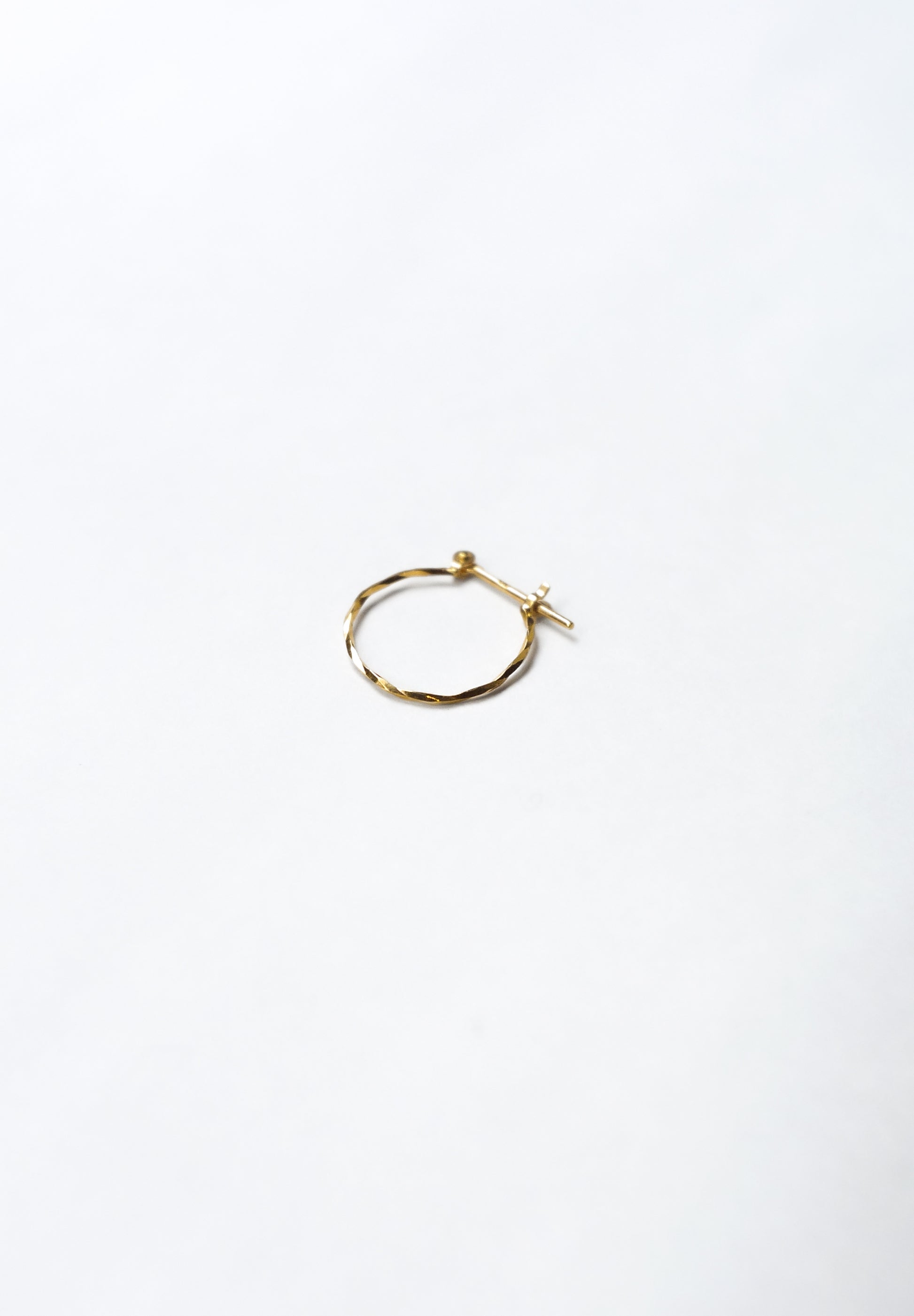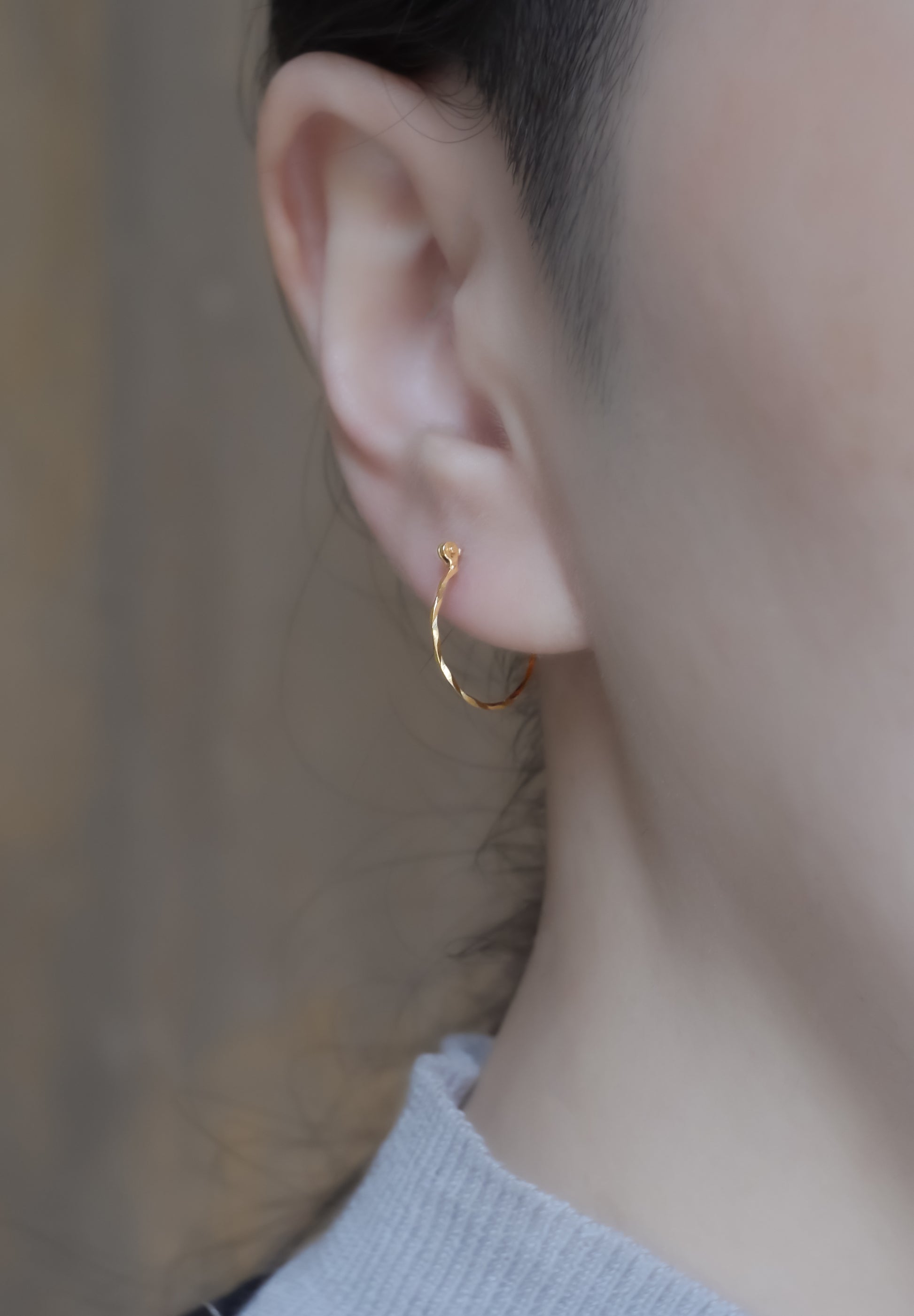 약 0.8mm K18 와이어로 제작된 후프 이어링입니다. 커팅의 장식된 라인은 섬세하면서도 날카로운 빛을 발산합니다.
